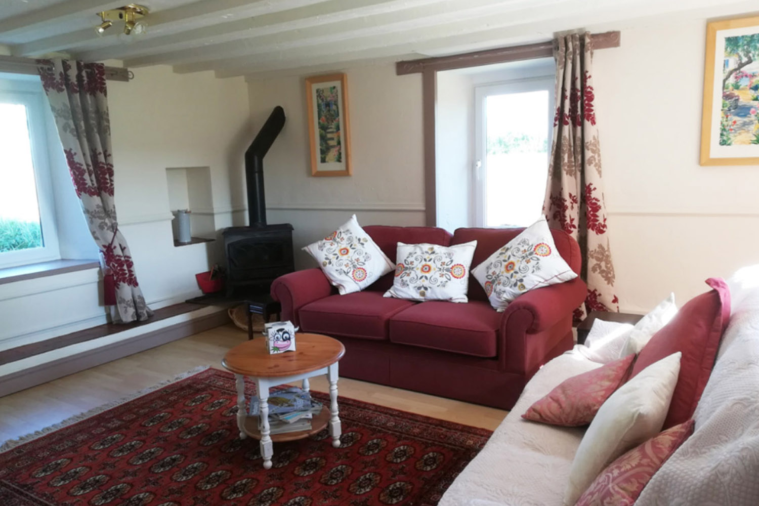 The triple aspect lounge, with comfortable sofa bed, has a cast iron log burner for cosy colder months. *( A large basket of logs will be supplied, however there will be a charge for additional logs).